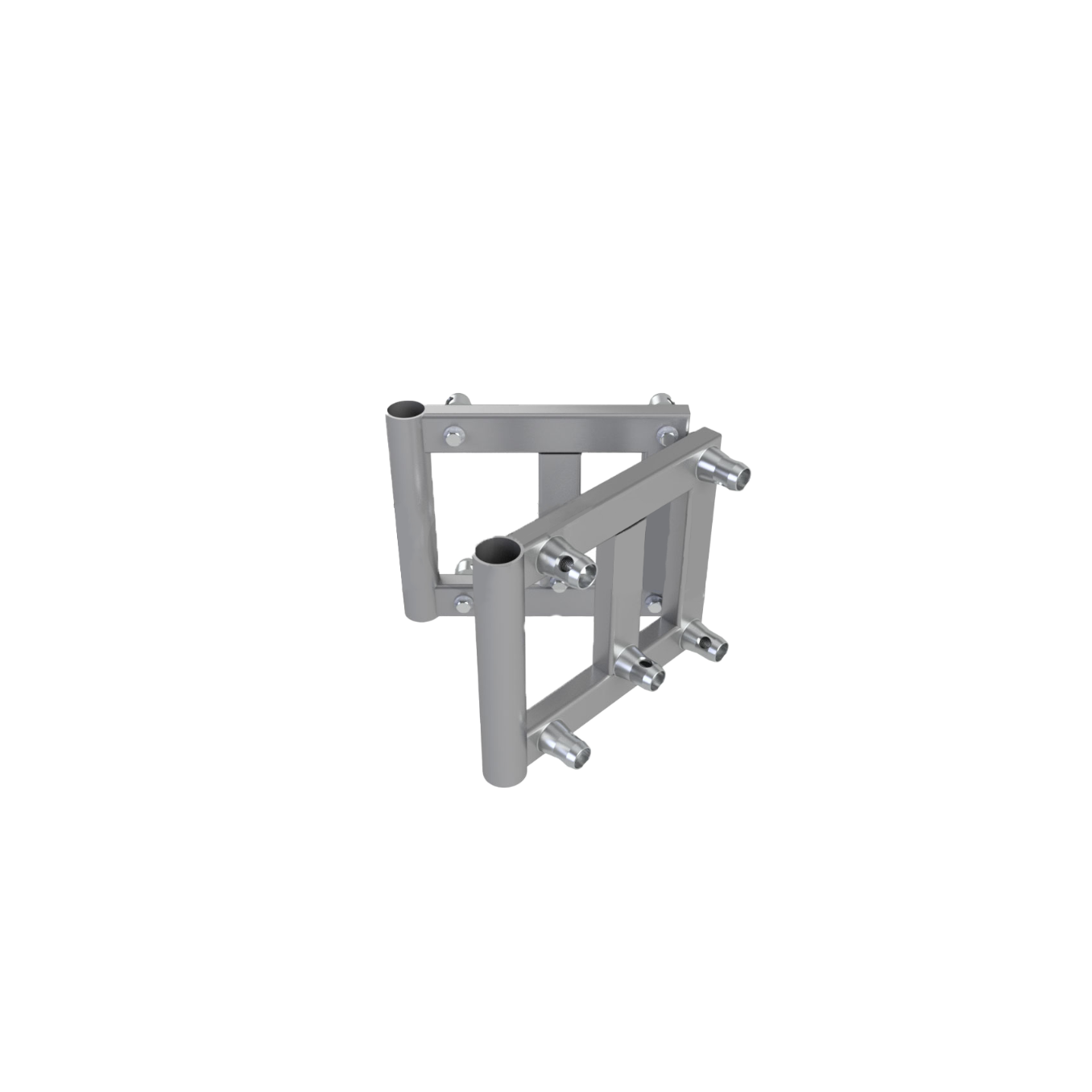The Eurotruss book corners enables configuration with free angle flexibility. With the book corners you can make angles in a range from 0 to 180 degrees. The attachments are bolted to the corner, using male or female receivers.