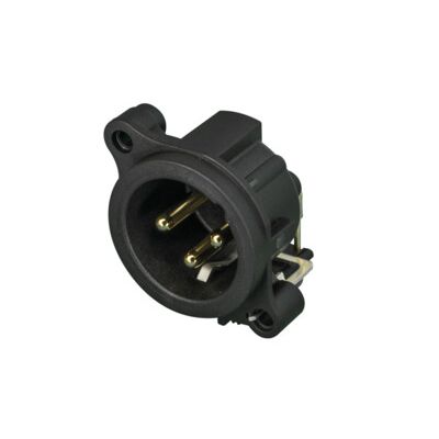 The 'State of the Art' receptacle. Round plastic body XLR PCB mount panel connector. These have the smallest size and highest packing density (23 mm between centres). Hard gold plated contacts with polished contact areas. UL recognized component.