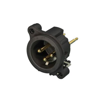 The 'State of the Art' receptacle. Round plastic body XLR PCB mount panel connector. These have the smallest size and highest packing density (23 mm between centres). Hard gold plated contacts with polished contact areas. UL recognized component.
