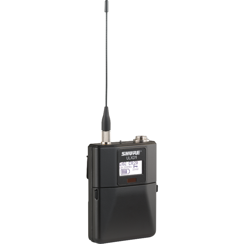 The ULXD1 is a wireless bodypack transmitter compatible with ULX-D Digital Wireless Systems.