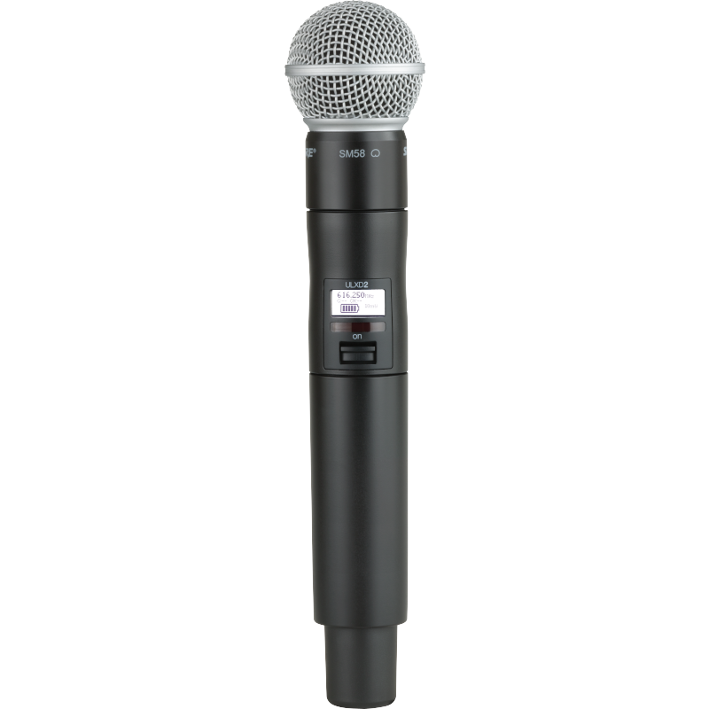 The Shure ULXD2 is a handheld wireless transmitter compatible with ULX-D Digital Wireless Systems.