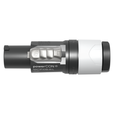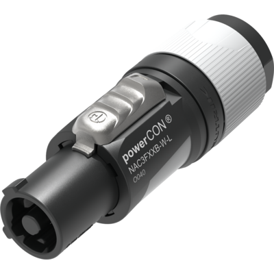 The powerCON FXXA/FXXB is a single phase (3 conductor) lockable power connector with Circuit Breaking Capability when mated with powerCON XX Series receptacles.