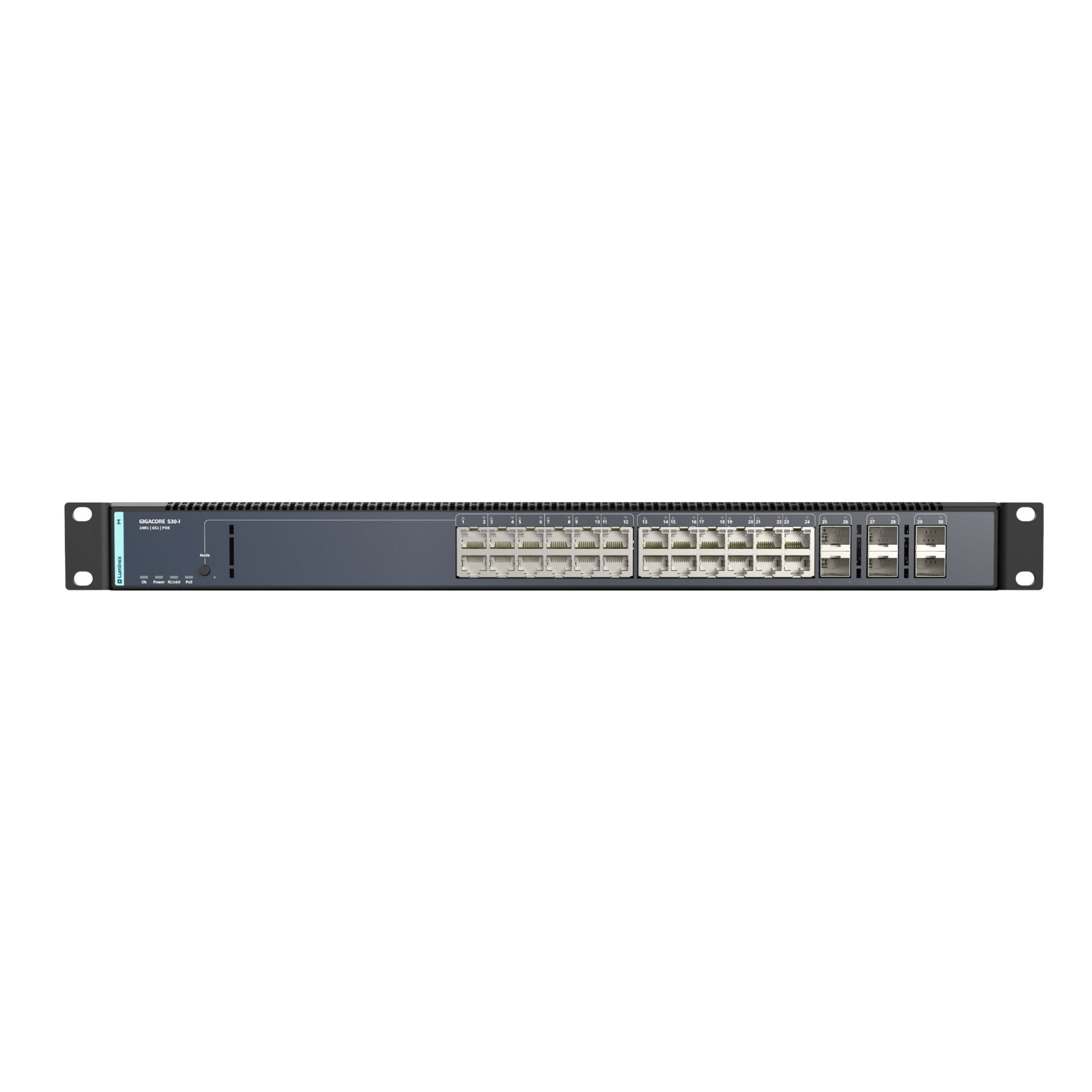 Entertainment installations constantly push the limits, and the need to deploy PoE-powered devices is continuously increasing. The GigaCore S30-I provides an answer to these scenarios by offering PoE+ on all ports as an option.