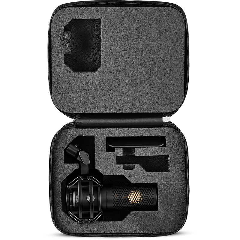 The zippered carrying case offers rugged construction and excellent protection for the KSM32/SM Mic and accessories, including the shock mount and magnetic pop filter.